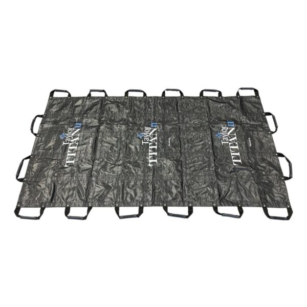 The Taylor Titan II™ Soft Stretcher is a reusable bariatric mover designed for situations where rigid stretchers won’t fit. As part of the Titan soft stretcher line, it’s cost effective, durable and easy to store. Constructed from ultra strong PVC and nylon webbing, the Titan II measures 40 inches by 80 inches and is black for a professional appearance. Its flexible design folds compactly and slides into the included custom carrying case for space saving storage. This stretcher is vital when tight spaces or stairways prohibit standard EMS stretchers, making it essential equipment for EMS crews, fire departments and industrial safety teams.