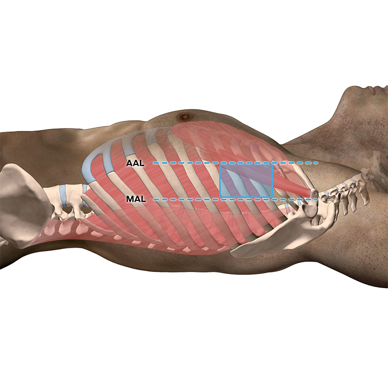 Developed to be inserted into the patent’s axilla for device alignment between the anterior axillary line (AAL) and the midaxillary line (MAL).