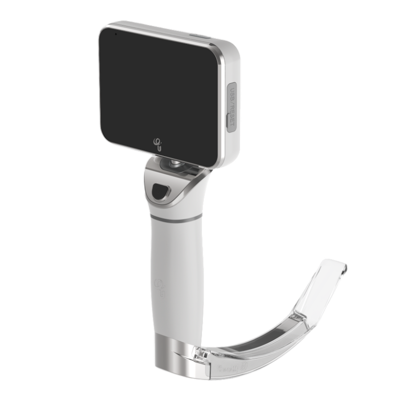 The UESCope VL460 Video Laryngoscope is a sleek and ergonomic device crafted for comfort and balance during use. It features a 3-inch touch screen display that can record up to 16 hours of video, powered by a rechargeable lithium-ion battery that offers up to 200 minutes of continuous operation.
